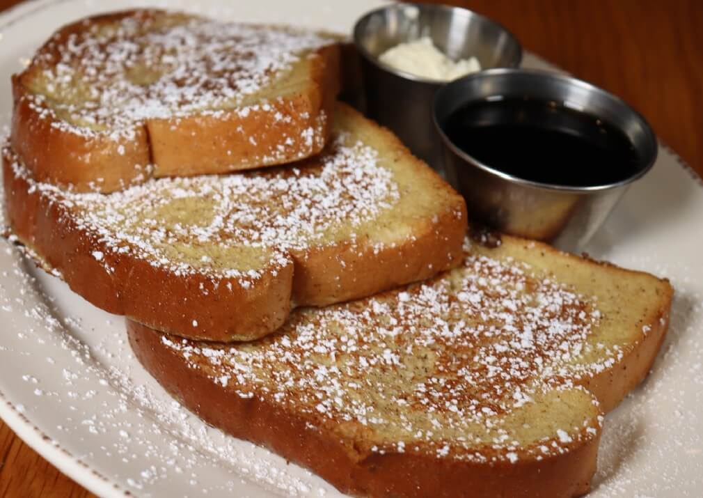 Thick cut brioche battered and griddled to perfection. Served with syrup, whipped butter, and powdered sugar $11